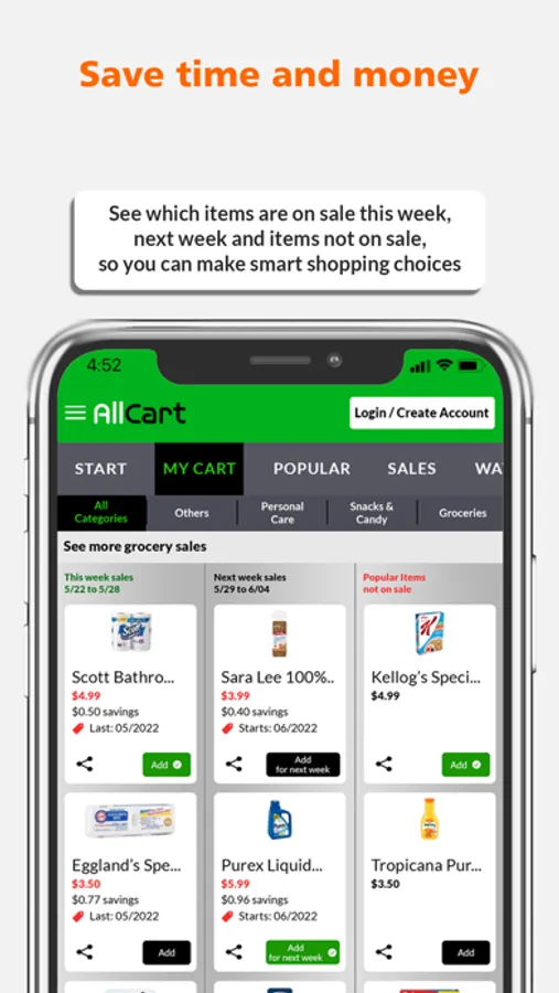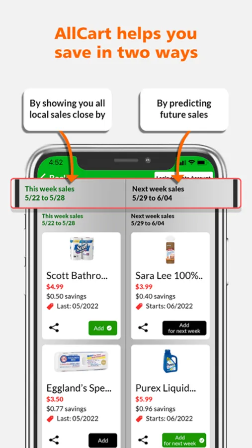 Each week AllCart scans 120,000+ stores’ sales flyers nationwide to find you the best grocery sales and predict future sales.