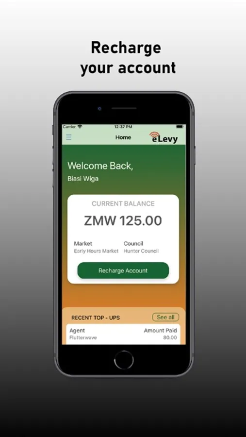 The eLevy Zambia App allows you to manage your eLevy Account from adding funds to your account, using online or offline payment method, in addition to monitoring your eLevy payments .