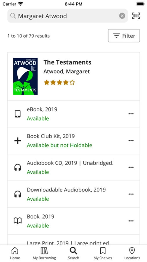 - Easy to use search to find relevant results quickly - Place and manage all of your library holds