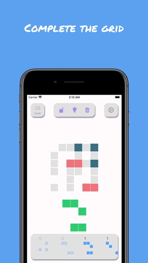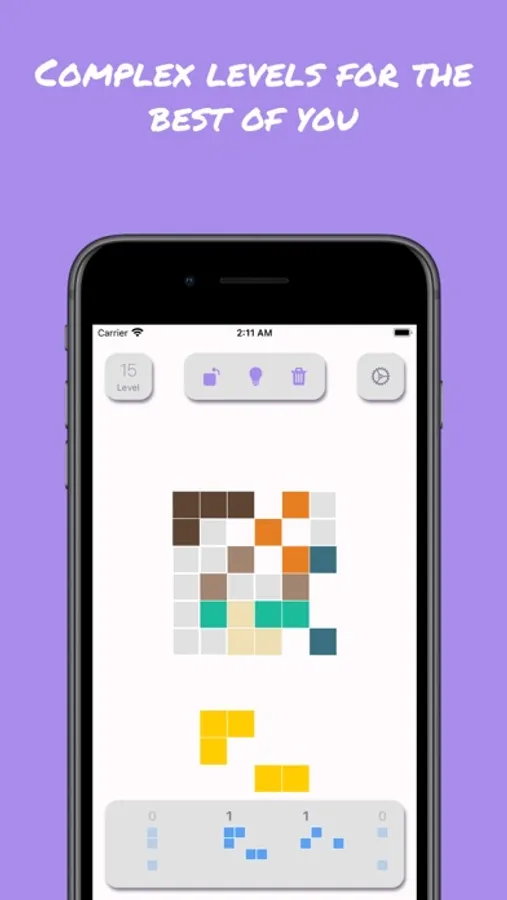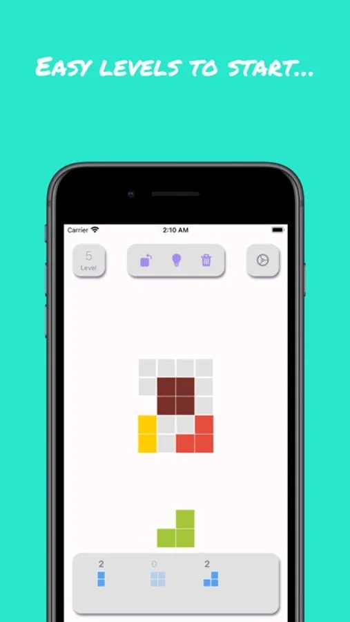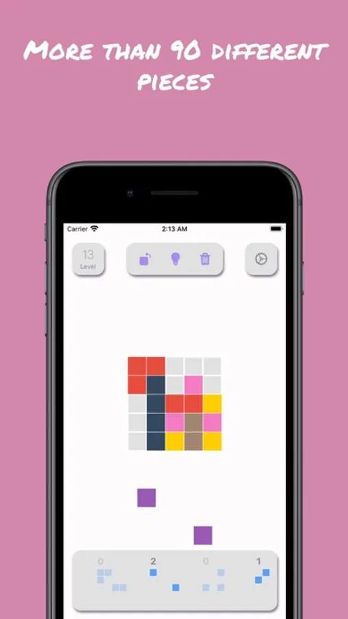 Kata Puzzle is an original and addicting puzzle game. The objective is to complete a grid with the available pieces. Progress through increasingly difficult levels and show your friends your talent.