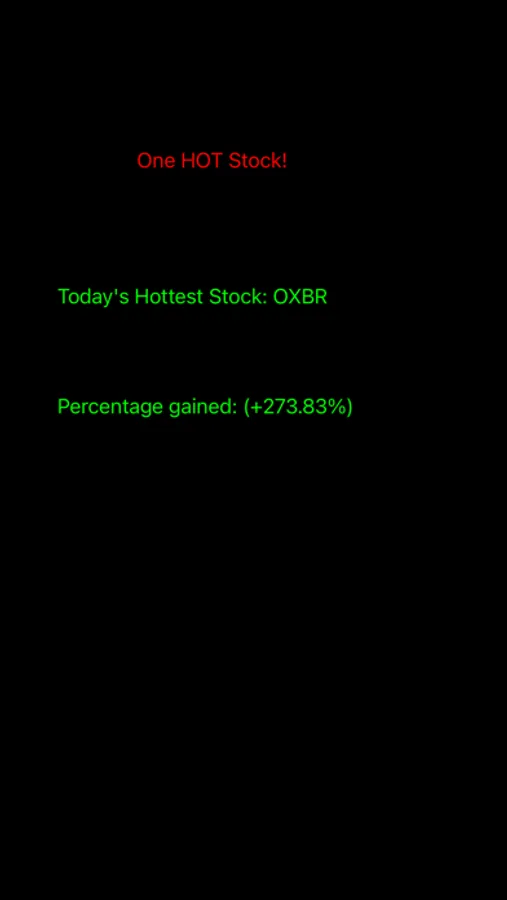 This app displays the top gainer stock of the day (ticker symbol), as well as the percentage gained by that stock. The user simply needs to open the app to access this information.