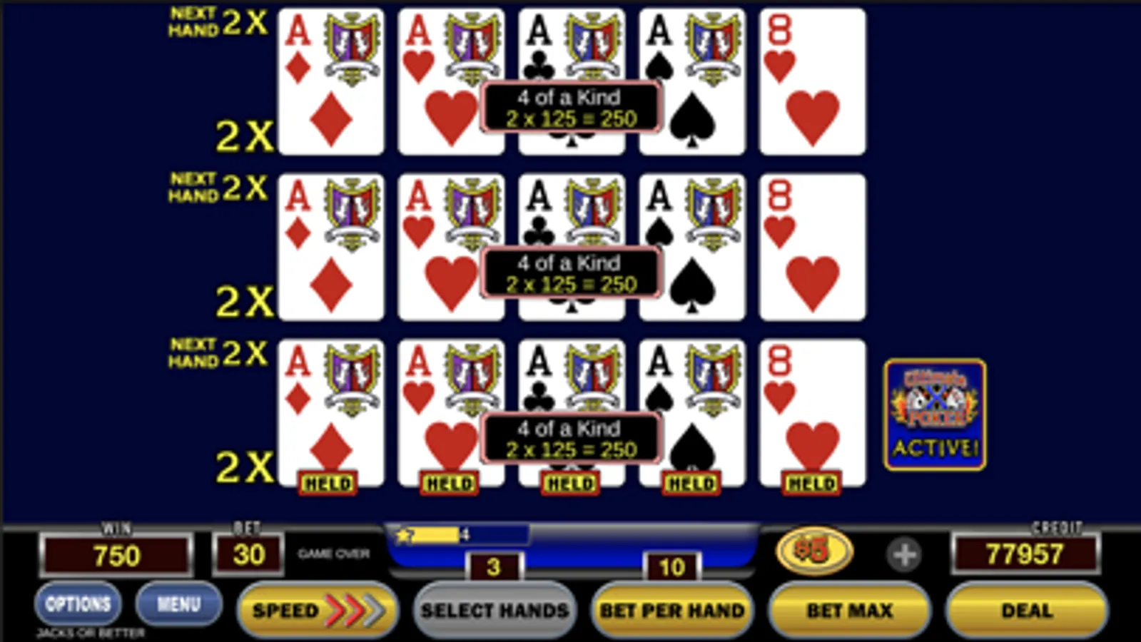 Ultimate X Poker is gives the best payouts! Bet Max and enable the Ultimate X Feature!
