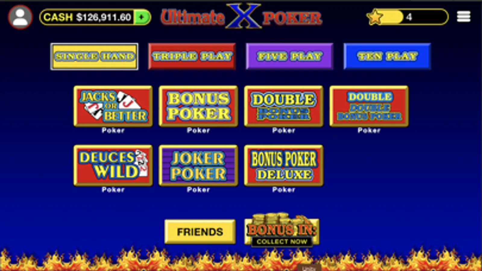 WELCOME TO ULTIMATE X POKER! Your favorite casino games and jackpot thrills are free—and right at your fingertips!—in the world’s best casino poker app. Play all the most popular Ultimate X Video Poker casino games!