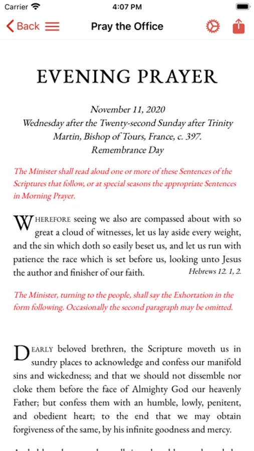 • Instructions to transition from using the app to praying with a Prayer Book and Bible.