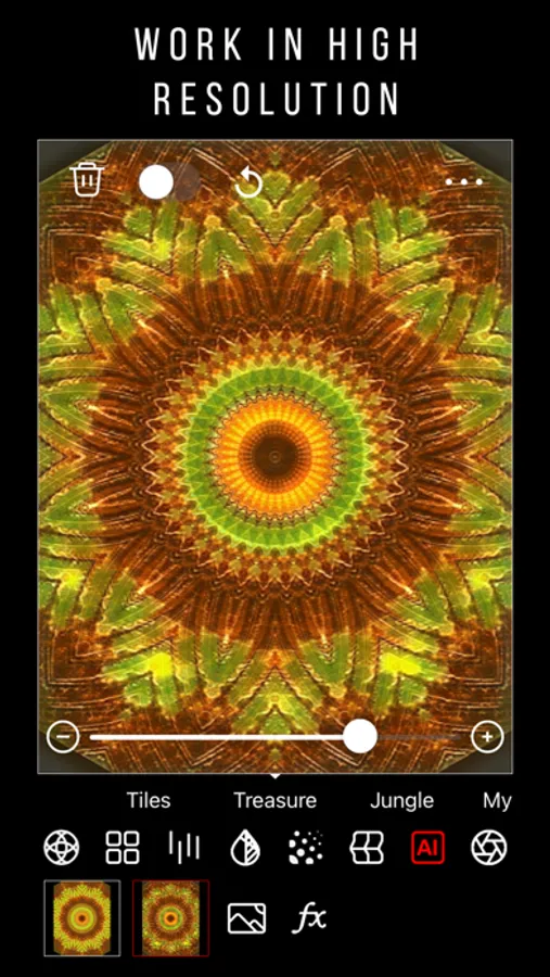 Render high-quality images to your photo library, and create a personal gallery in Patternica.