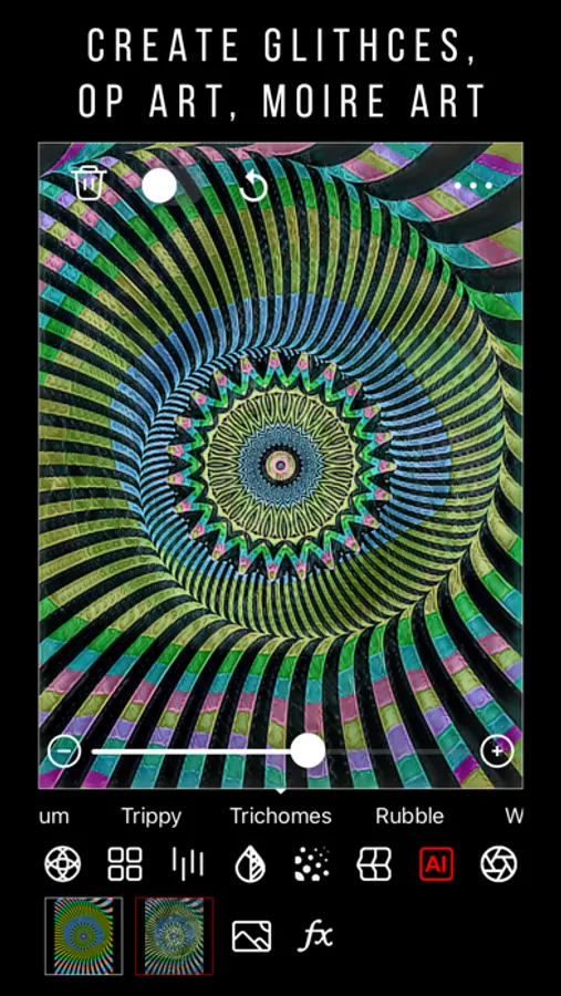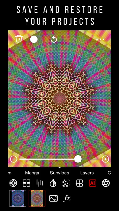Mask, noise, merge, sharp, disrupt, etc. your works without leaving the app.