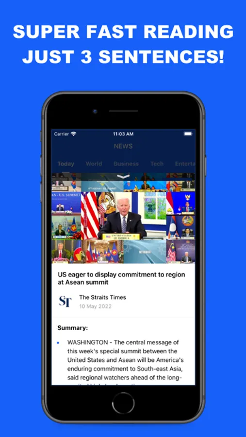 Not only do we bring you the latest news, our powerful artificial intelligence (A.I) technology automatically gives you a summary of the news in just 3 sentences. Not only does this save you time, you can digest more of what's going on around you a lot faster.