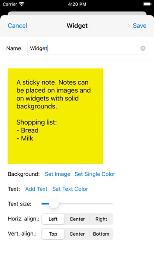 A very easy to use widget creator. Put a photo and your text (or current date) on a widget. Then put the widget on your home screen. Your friends can put widgets on their home screens and you can send pictures (e.g. selfies) to their screens.