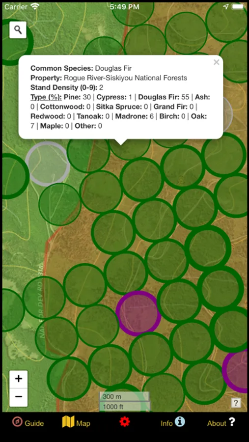 You can manually toggle given tree species on or off if you're an arborist specifically interested in forestry rather than mushrooms. This app is a great way to discover old forest stands or to learn how to identify certain types of trees by look. If you are interested in finding birch bark, oak acorns, or sugar maples, just turn on a given layer and eliminate the guessing and frustration! Need some pine needles and cones for an art project? Pick from thousands of woodland patches laden with beds of them!
