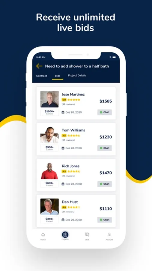 Grow your renovation and repair business with confidence! View the latest high-quality home renovation projects and effortlessly submit a competitive bid. Win jobs like never before, grow your real estate investor network and build lasting relationships.