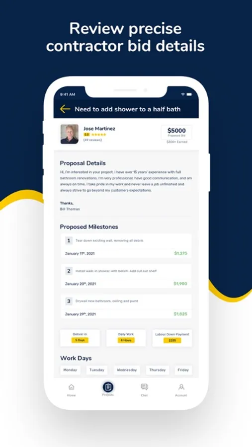 - Collaborate on the go, receive milestone progress photos at each phase of your project