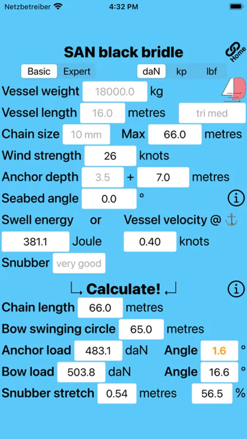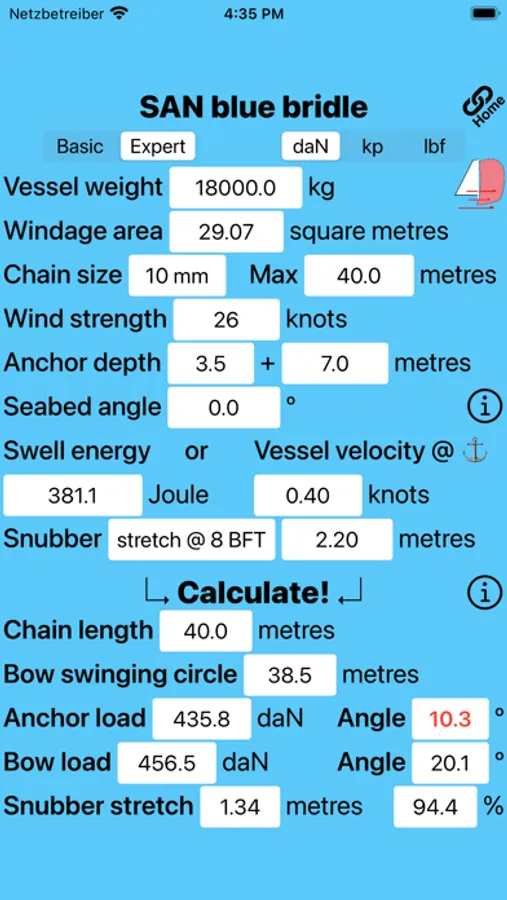 Rather than following generic and unspecific advice how much chain or rope to pay out when at anchor, use this app to calculate the right amount of chain or rope needed for the anchor to have the best possible grip – safety tailored for your vessel!