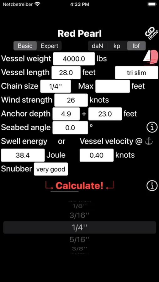 The app has two modes of working: Basic Mode and Expert Mode. With Basic Mode you will be able to use the app right away, whilst Expert Mode allows you to enter more technical details of your boat if you know them.