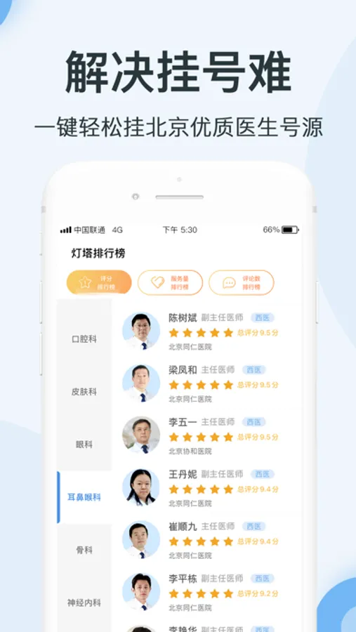 有了医生点评挂号网APP,“疾病对不上科室”、“医生水平模糊不清”、“名医号难挂”等看病时的扎心问题将不复存在!在医生点评挂号网APP,可以看评价选医生,查好医排行榜找医生。用户分享的真实、客观的就医体验,助力打破高成本、盲目就医困局。内容涵盖查疾病、找医生、医生点评、好医排行榜、预约挂号、专业疾病话题讨论等板块。
