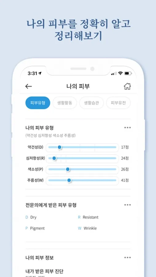 - 생활습관 : 평상시 자신이 사용하는 제품에 대한 피부 생활습관을 상세히 기록해 둘 수 있어요.
