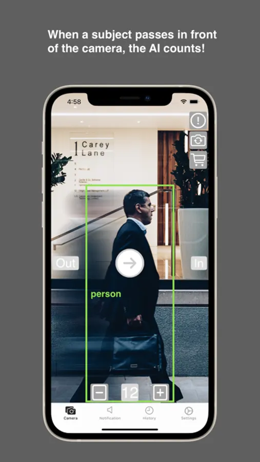This application is set up at the entrance of the store to count the number of customers coming in and out of the store.
