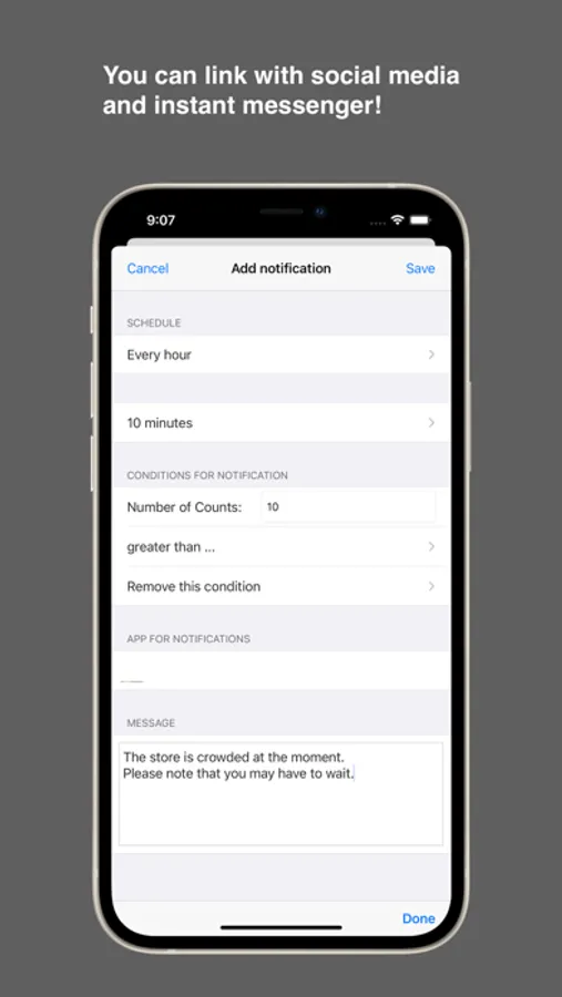 For example, once an hour, if the count is more than 10, you can tweet "We are busy in the store at the moment. If the count is higher than 10, a message such as "We are currently busy in the store" will be tweeted.