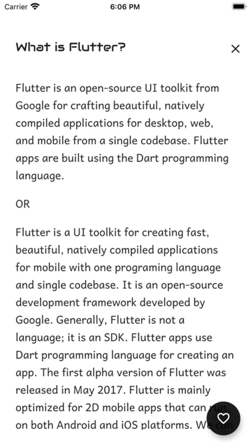 With a simple swipe of your finger then watch the answers and review them later.You also have the option to select your own technologies.We include each and every set of technologies such as iOS, Angular,Flutter, Kotlin, Azure, iOS, Javascript, SQL, .Net,React Native, Algorithms, Swift and many more.