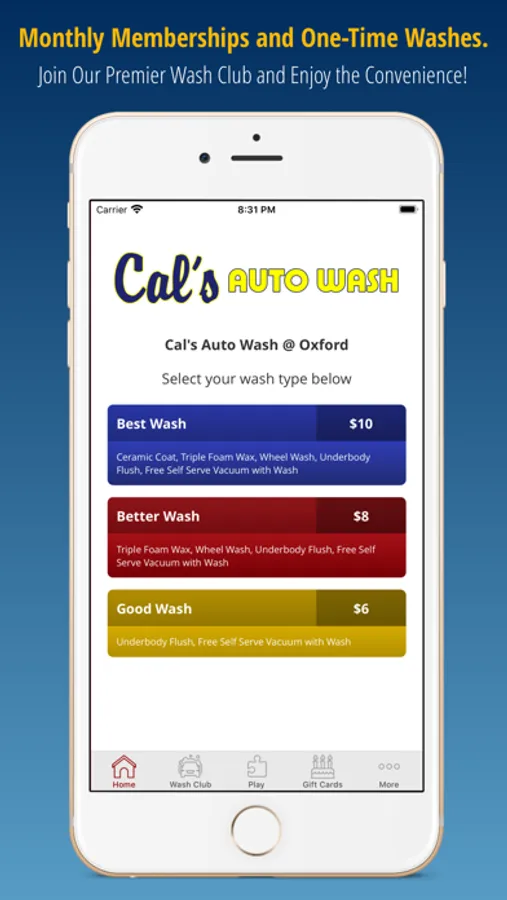 Welcome to the Cal's Auto Wash mobile app!