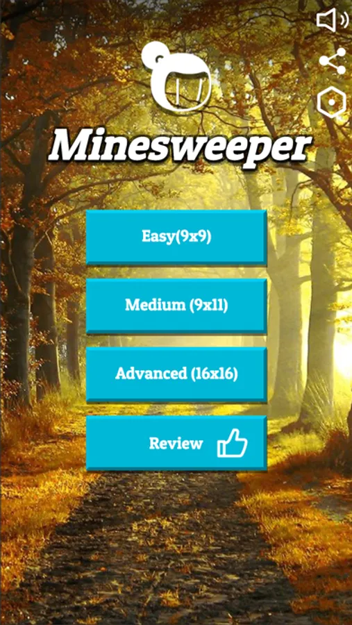 •▶ Mode ▷ The classic minesweeper game includes three mode challenges: Easy, Medium and Hard.