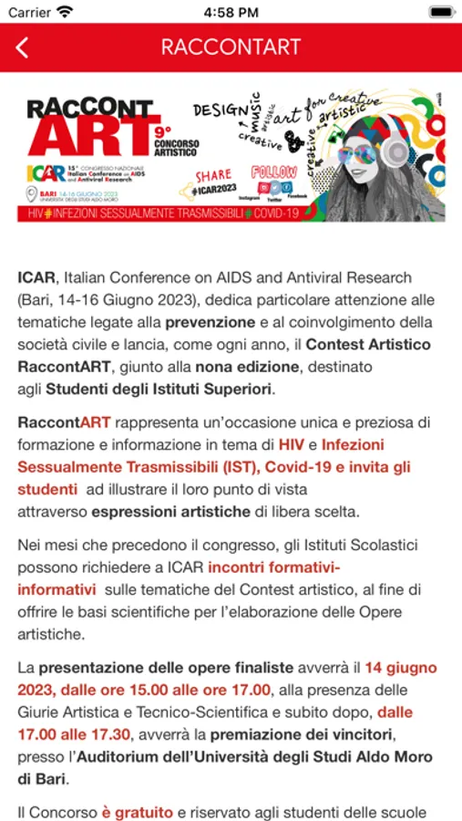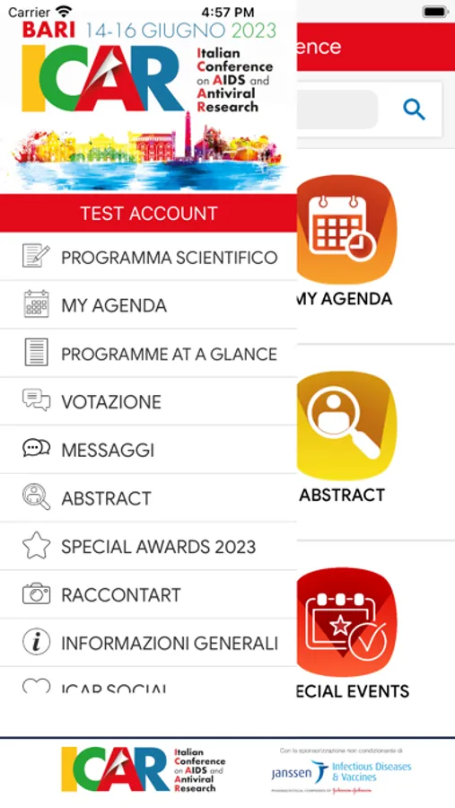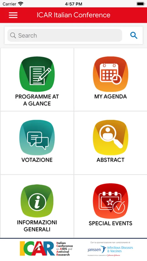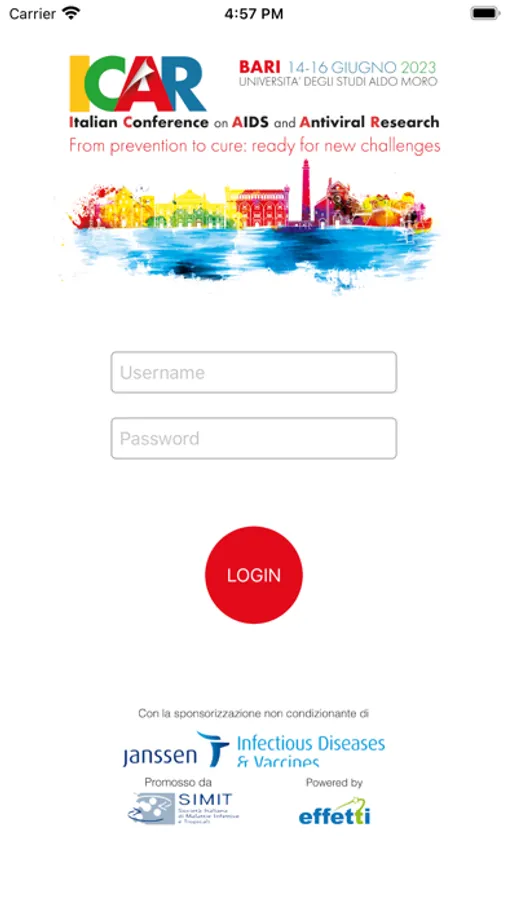 La App è realizzata appositamente per il Congresso ICAR - “Italian Conference on AIDS and Antiviral Research”. Permette agli iscritti al Congresso di ricevere informazioni generali pre-evento e di interagire con la manifestazione in tutte le sue fasi.