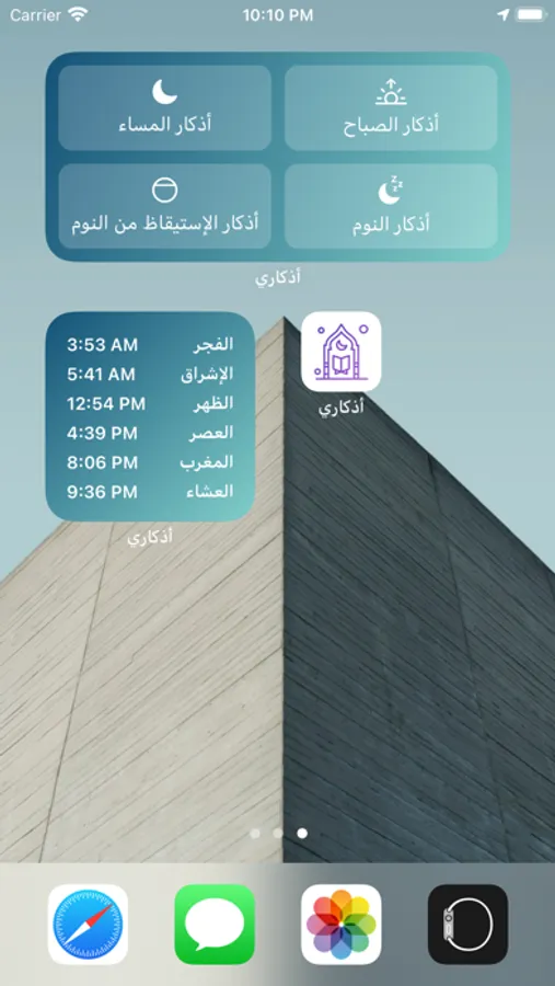- التطبيق يدعم الويدجت من أجل الوصول الى أذكار الصباح والمساء والنوم و الاستيقاظ من النوم بشكل سهل وسريع ضمن الواجهة الرئيسية للنظام.