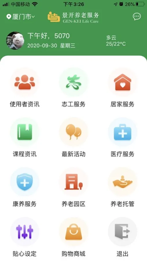 景开养老APP是一款针对老年人的一站式养老平台。在App里集合了基础用户、志工、居服人员、平台推广者多种角色的多个功能。使用者资讯用于展示会员的个人资料;志工可在志工服务中进行打卡签到以及服务申请,居服人员可在居家服务板块中进行打卡签到以及服务申请;在课程咨询中有各种培训课程,有各种最新活动;提供多种医疗服务;康养服务让员工更方便的完成工作,可查看全国各地的养老园区,可选择需要的养老托管服务;,可在我的页面查看个人的养老金、园区申请记录、业务提报、奖金、收藏、报名记录等信息。