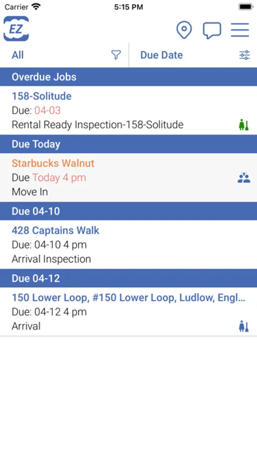 The EZcare app lets you route your stops, view order information, instructions and property photos, and complete checklists with photos and videos. The app also allows field staff to report urgent issues in the middle of cleaning or inspection, send estimated completion time to the office, pause and resume work, scan inventory items, collect signature from residents, upload invoice or timesheet, and communicate with your team via in-app messaging.