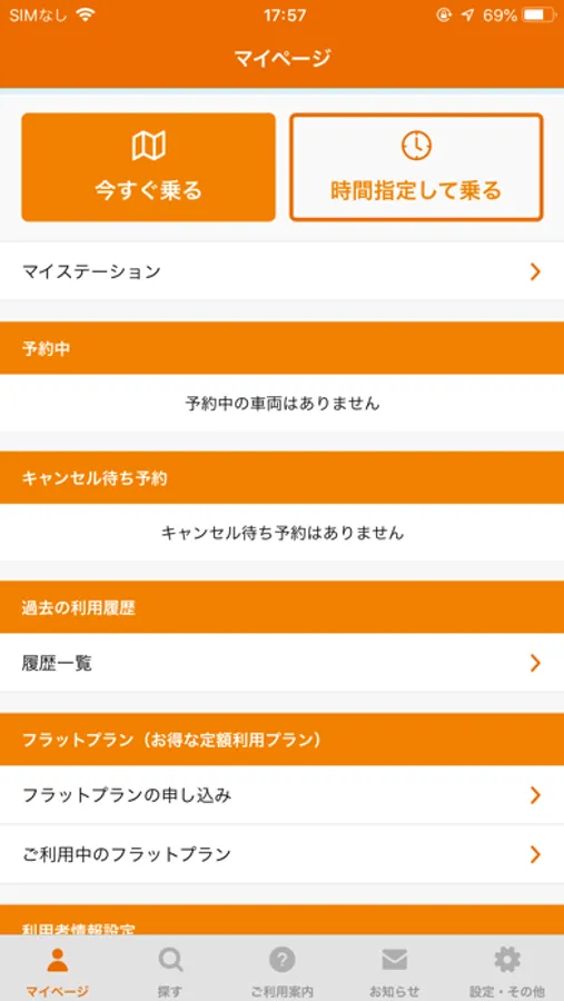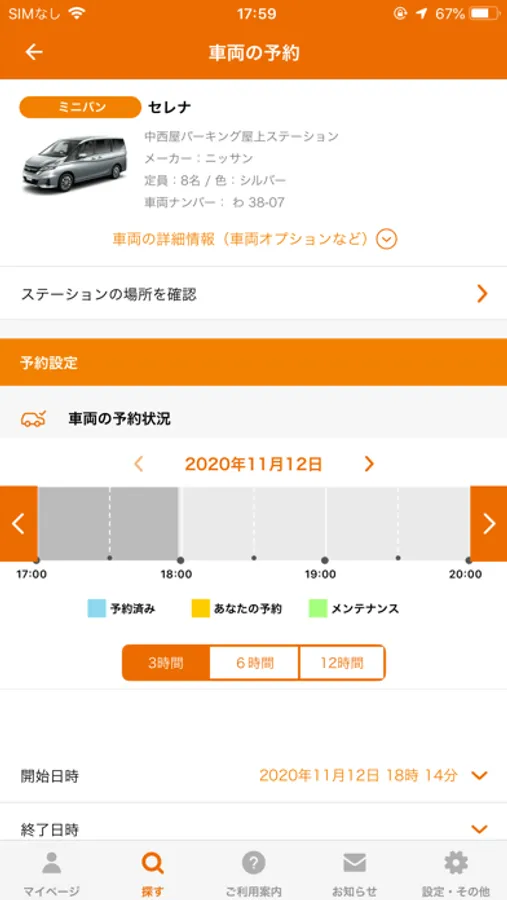 2.“マイページ”または“探す”のページよりステーションと車を選択