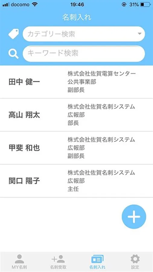 受け取った名刺をカテゴリーに分けたり、検索することができます。