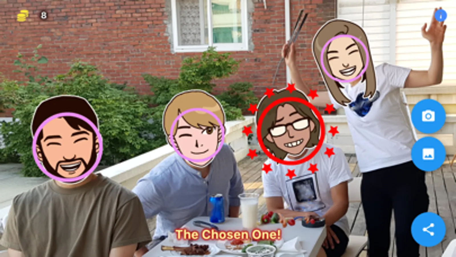 To draw for a winner(or loser), prepare a photo in which all candidates' faces are clearly shown by taking a picture or selecting it in your gallery. The faces are automatically detected and a winner(or loser) is picked from them. Let's have some fun to give a prize or a penalty to "The Chosen One"!