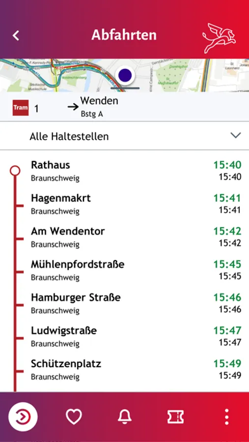 • Abfahrten und Fahrtzeiten werden in Echtzeit anzeigt.