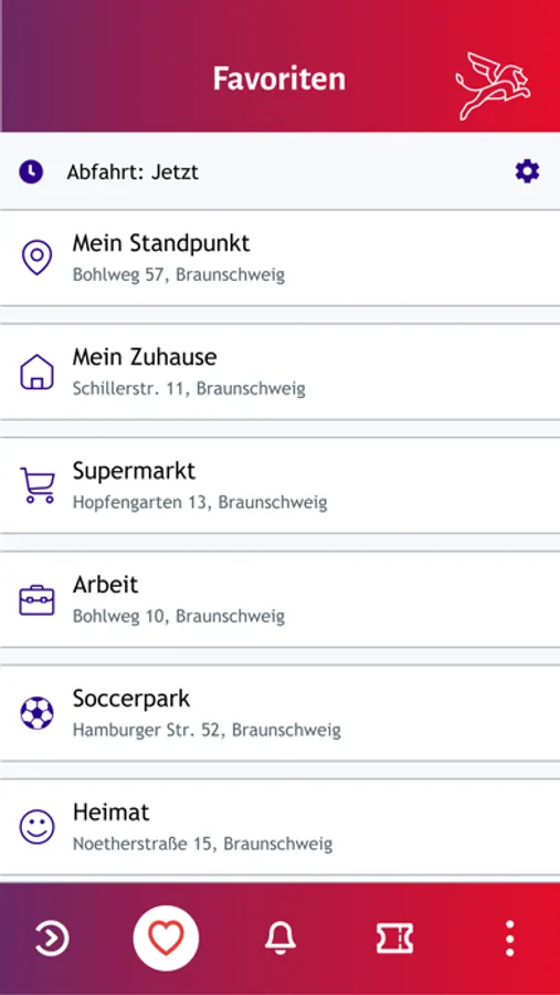 • Besonders wichtige Orte, wie das Zuhause oder die Arbeit, können als Favoriten mit unterschiedlichen Icons hinterlegt und für Fahrtauskünfte beliebig kombiniert werden.