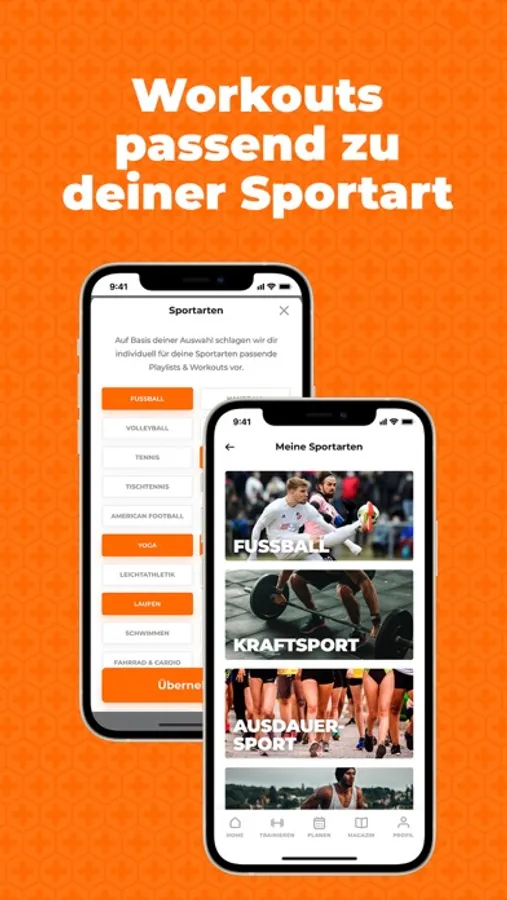 - Workouts für Kraft, Ausdauer, Mobilität, Yoga, Fußball und viele weitere Team- und Individualsportarten