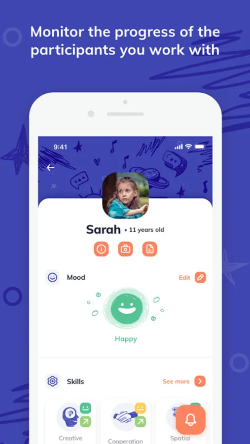2. Track mood and monitor skills: log the mood and evaluate different skills of your participants.
