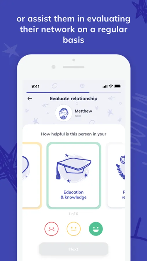 4. Build social map and track network: map and evaluate the social network of your participants. Evaluate their relationships on frequency, helpfulness and emotional value.