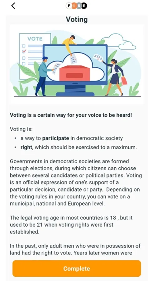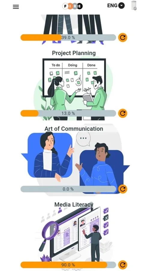 F.I.R.E. App is the mobile educational program provided training materials and curriculum specially designed to cover the necessary competencies of the non-governmental and self-governing organizations dedicated to solving problems in their community.