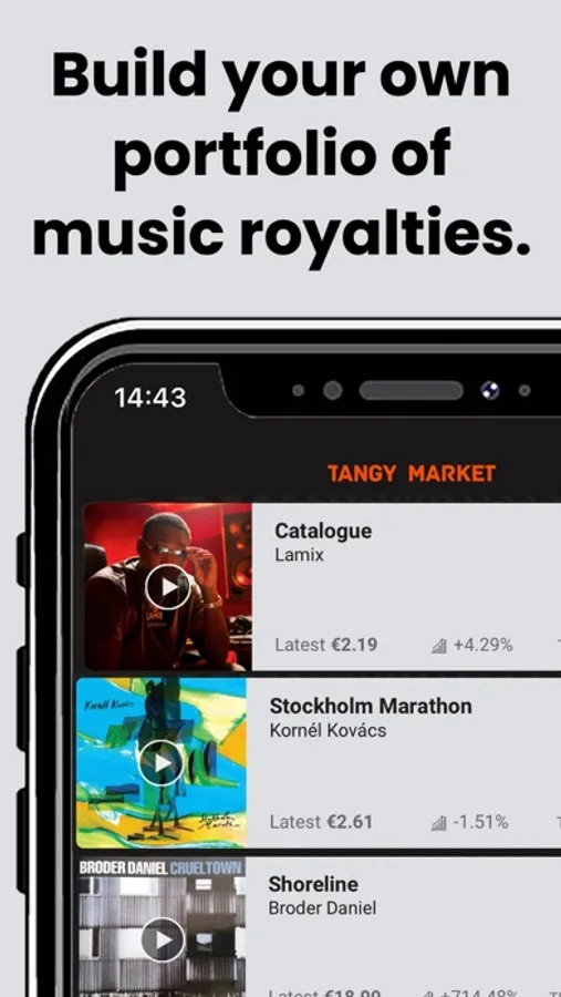 Tangy Market enables private investments in Music Royalties from songs, albums and music catalogs. Music royalties have the potential of providing you a yield which is uncorrelated to traditional financial markets. Browse the marketplace, discover a musical gem, and hum along with your latest investment.