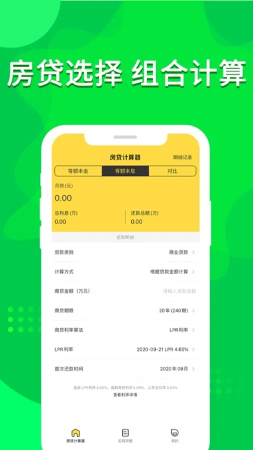 房贷计算器——计算房贷利率的多功能计算器软件。LPR利率实时更新,一个专业、免费、计算精确的房贷计算器。可以根据基准利率上浮,以及多种扣款计算方式,选择适合自己的房贷按揭模式。购房贷款计算根据央行最新的利率,计算器快捷计算出您的每月还款明细。买房准备不清楚,各项买房信息,供你了解。支持公积金贷计算、商业贷计算以及组合贷计算等多种方式,同时可在等额本金和等额本息还款模式中随意切换。