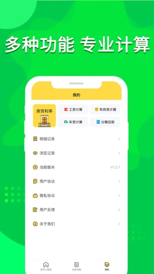 新版计算器不仅仅是房贷计算器,还能年终奖、工资、车贷、买房贷款利率、复利计算等多种计算,一步到位的计算器。设有多种功能计算,让用户不在担心计算问题。租房不需要记账软件计算,我们一直在用心的做的计算器应用,以用户体验满意度为目标。使应用更简便,操作更流畅,使用更贴心。
