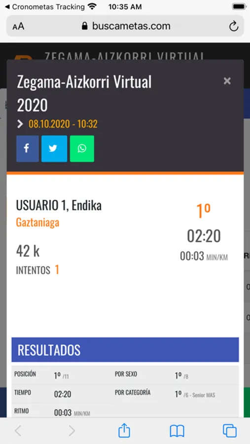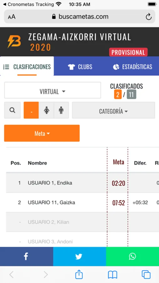 - Tus tiempos visibles al momento según pases por los puntos de control o meta