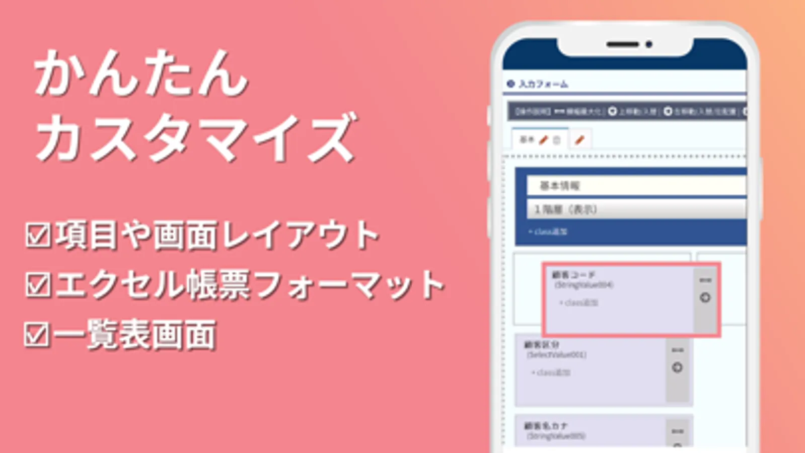 ・項目や画面を簡単にカスタマイズ可能。あらゆる業種や用途にフィット。