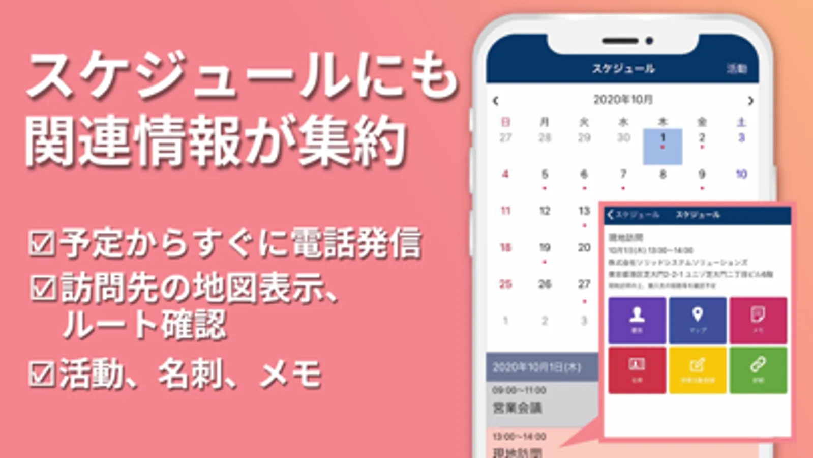 本アプリは、顧客管理クラウドサービス「All Gather CRM」をモバイルで快適にお使い頂くためのアプリです。シンプルで使いやすく、顧客管理の他、日々の活動管理やスケジュール管理、名刺管理、メッセージツールも搭載しているので、ビジネスやプライベートなどあらゆるシーンでお使いいただけます。