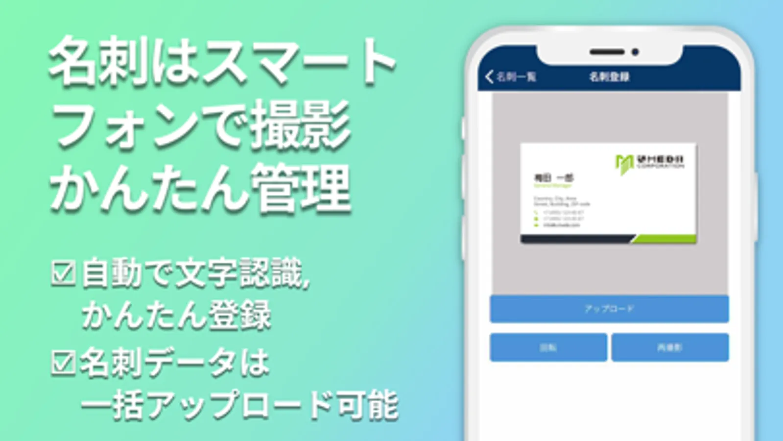 ・獲得した名刺をすぐにスマホで撮影。簡単に登録できます。