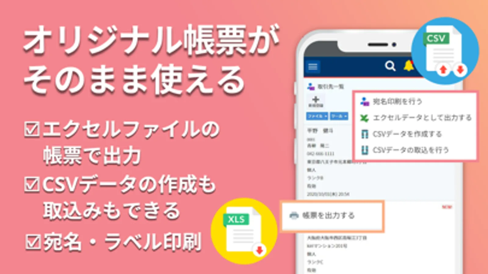 11.CSV形式ファイル出力・取込、エクセルファイル出力