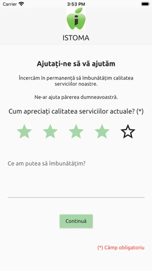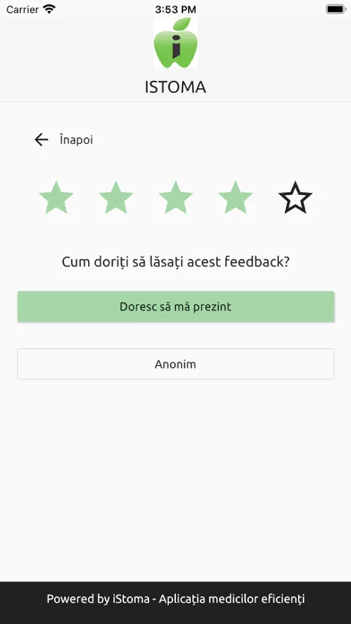 Acest feedback nu este public și poate fi consultat direct în aplicația iStoma.