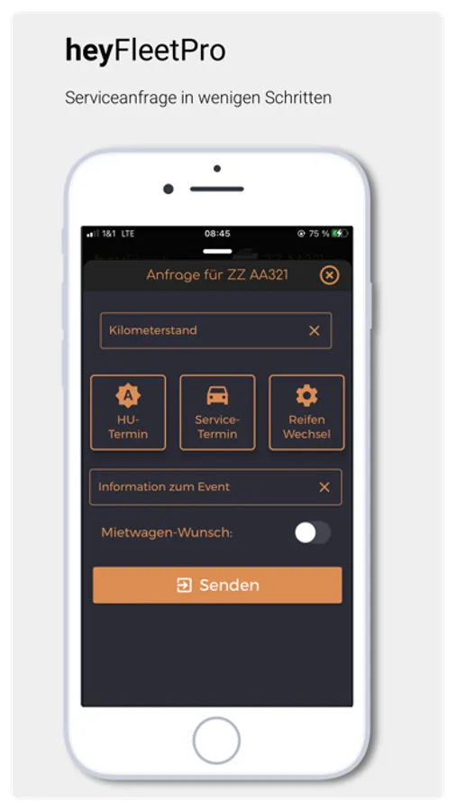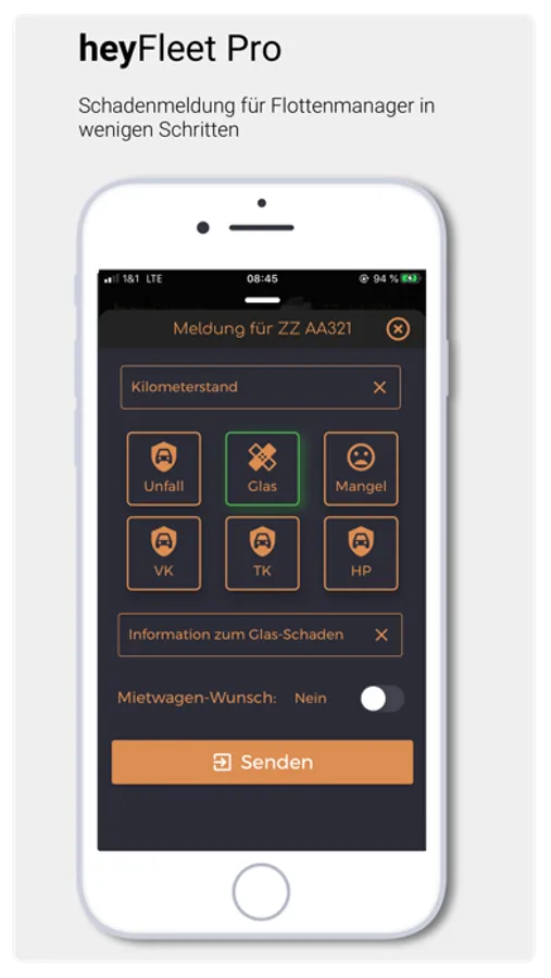 heyFleet Pro - Die App für Flottenmanager zur Erfassung von Ereignissen, zum Beispiel Schäden oder Serviceanmeldungen, für ihre im FleetCar-Pool befindlichen Fahrzeuge.
