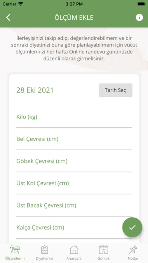 Diyetisyen Melda danışanlarına özel diyet takip uygulaması.