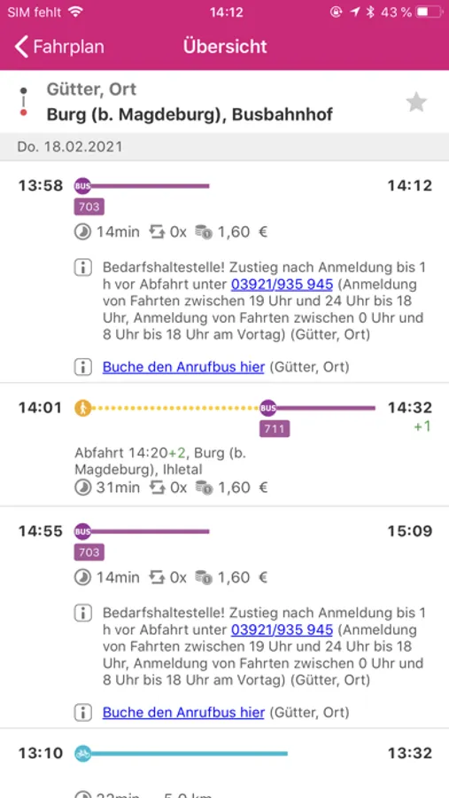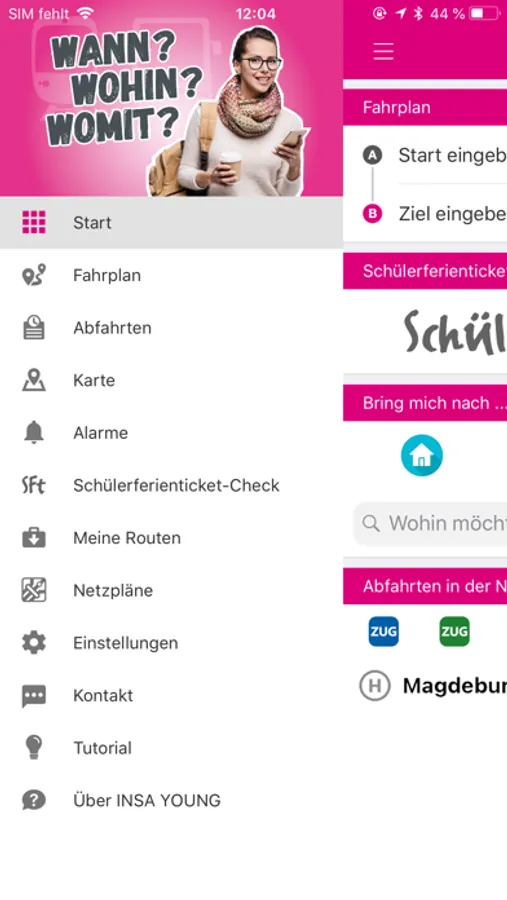 Easy journey planning from your current location to a train station, a stop or an address. INSA YOUNG knows every timetable of the public transport companies in Saxony-Anhalt, in the Mitteldeutscher Verkehrsverbund (MDV) as well as the nationwide rail traffic and determines the most favourable connections.