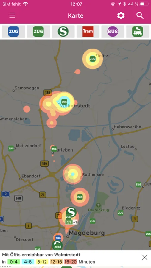 Select any station, stop or address in the map and find out which places you can reach via public transport within 20 minutes.